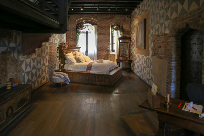 - Niewielkie pomieszczenie imitujące sypialnię, w którym ustawiono łóżko stworzone na potrzeby filmu Romeo i Julia reżyserii Franco Zefirelliego z 1968 roku. Powstało ono co prawda w stylu renesansowym, a za jego wygląd odpowiadał znany projektant wnętrz Lorenzo Mongiardino.