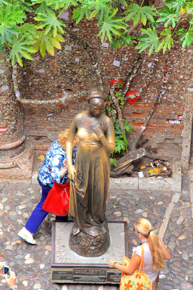 Drugą atrakcją dziedzińca jest posąg z brązu, z którym związana jest popularna, choć właściwie mało romantyczna tradycja. Każdego dnia licznie zebrani turyści próbują zbliżyć się do rzeźby przedstawiającej tytułową bohaterkę dramatu chcąc… chwycić ją za prawą pierś, co zgodnie z przesądem ma przynieść im pomyślność w kwestiach sercowych.