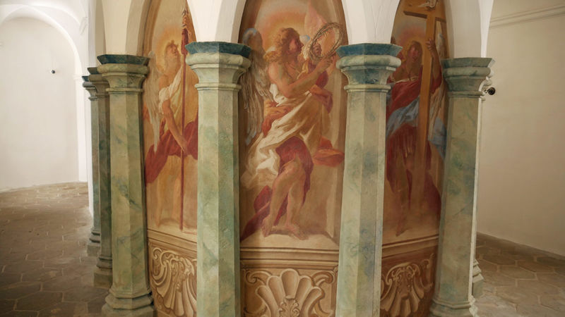Reszta fresków pogrupowana została w trzech ciągach: :Przodkowie Świętej Rodziny" (sklepienie), "Smutki świętego Józefa" (kaplice wschodnie) i "Radości świętego Józefa" (kaplice zachodnie). Niektóre z obrazów mogą nam się dziś wydawać dziwaczne jak chociażby "Józef prosi o rękę Maryi" czy "Zasmucenie św. Józefa macierzyństwem Maryi", trzeba jednak pamiętać, że są one charakterystyczne dla ówczesnej pobożności. Prawdopodobnie pomysły na tematykę obrazów pochodziły od opata Bernarda Rosy, który widział podobne dzieła w klasztorze Lilienfeld.