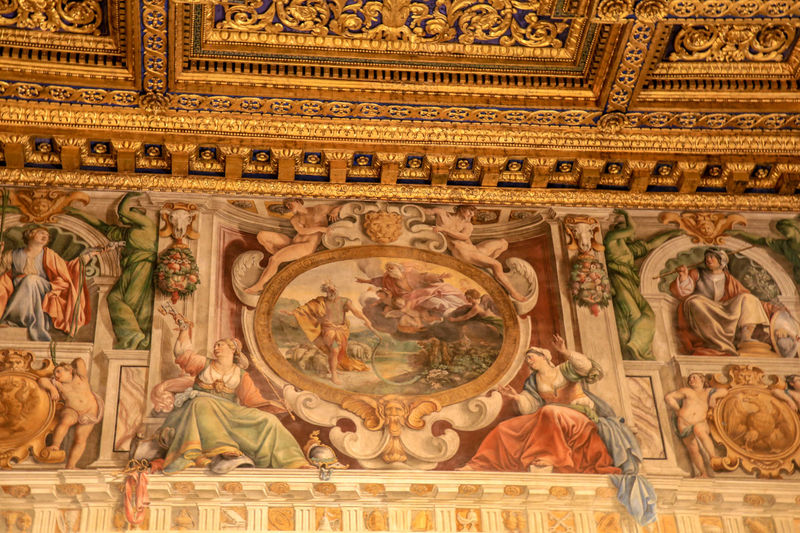 Wspaniała biblioteka, która co ciekawe nie powstała wcale w Rzymie, a pierwotnie znajdowała się w turyńskim pałacu Villa della Regina. Na Kwirynał przetransportowano ją dopiero w 1879 roku na zamówienie króla Umberto I, który chciał upiększyć nią apartamenty swojej małżonki.